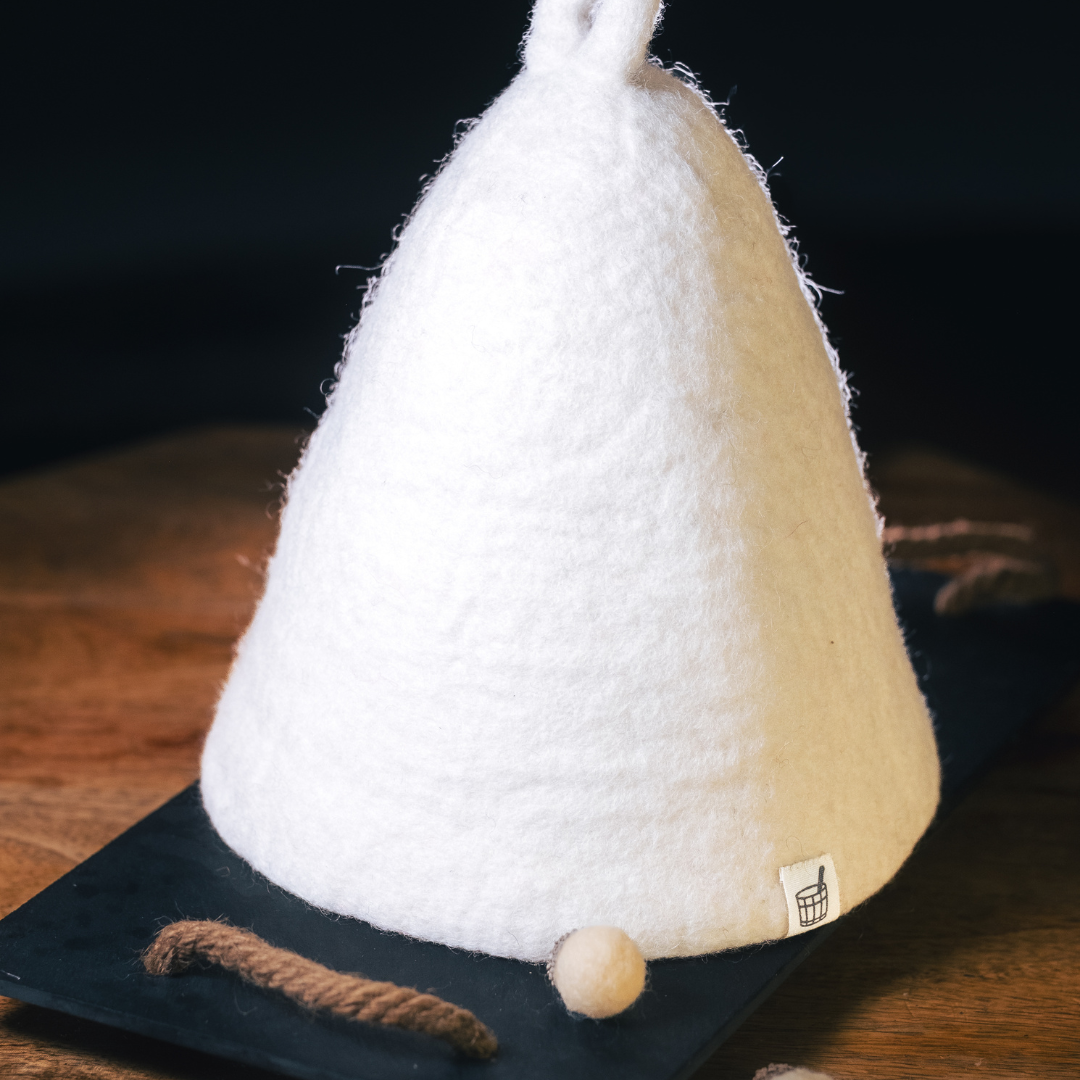 Our hats use ThermaWool™ technology: a dense, organic New Zealand wool felt engineered for the extreme heat of the sauna. It naturally insulates and diffuses rising heat and steam, helping protect your head from overheating while reducing scalp stress and heat-related hair damage.